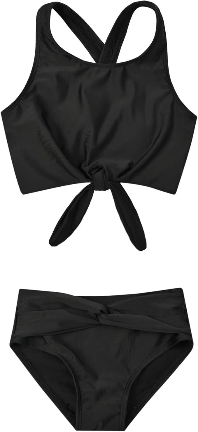 Girls Swimsuits Swimwear Bathing Suit Beach Bikini Two Piece Tie Front Swimsiuts 4-13Y