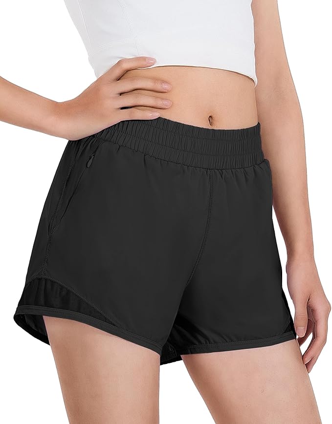 Girls Athletic Shorts Quick Dry Running Shorts with Mesh Liner and Zip Pockets