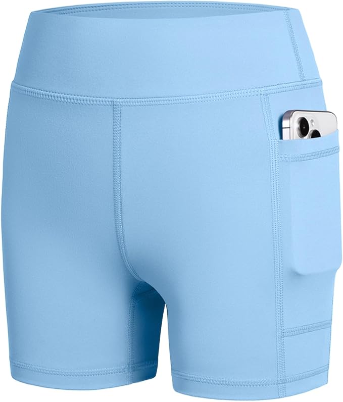 Girls 4" Volleyball Shorts Spandex Compression Youth Bike Shorts with Pockets for Athletic Dance