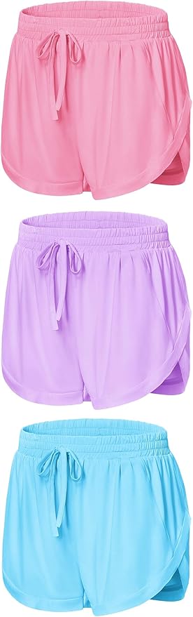 Girls Shorts Running Athletic 2 in 1 Workout Dolphin with Pockets Sports Cheer Track for Kids 6-14Y