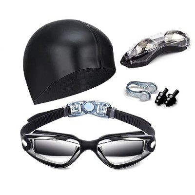 Swim Goggles Swimming Goggles No Leaking with Nose Clip, Earplugs, Swim Cap and Case for Men Women