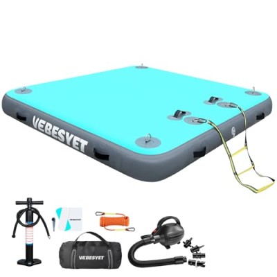 Inflatable Floating Dock Swim Platform, 6 Inch/8 Inch Thick Multi-Person Dock Floats Raft Platform with Storage Bag for Beach
