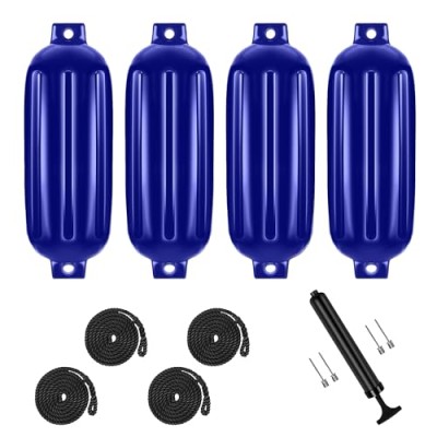 K-Musuclo Boat Bumpers 4 Pack, Boat Bumpers for Docking, Inflatable Cylindrical Twin Eye Ribbed Comes with Ropes Boat fenders