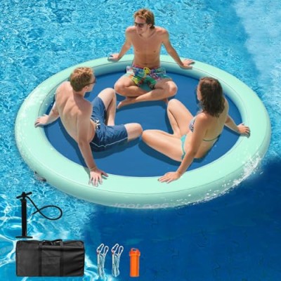 Round Floating Ring Inflatable Water Hammock Heavy Duty Lake Raft Float for Adults Tanning Pool Lounger Platform Mat with Pump