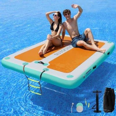 Inflatable Floating Dock for Lakes, Thick and Extra Wide Lake Floats for Adults, Non-Slip Air Dock Platform with Portable