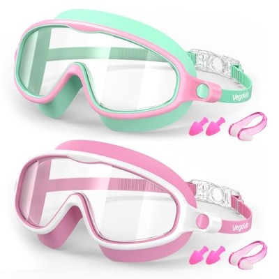 Kids Swim Goggles 2 Pack, Anti-Fog UV Protection Wide View Swimming Goggles for kids 3-15 Youth Boys Girls Toddler