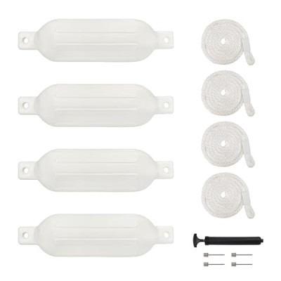 Boat Fender 4 Pack, Boat Bumper for Docking, Inflatable Boat Fenders for Docking 20-35ft Boat with 4 Ropes 1 Pump and 4 Needles,