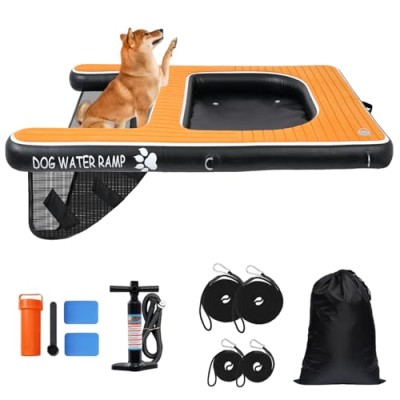 Inflatable Dog Water Platform and Dog Water Ramp 2 in 1, Upgrated Pet Floating Ladder with Non-Slip EVA Foam for Large Dogs Up