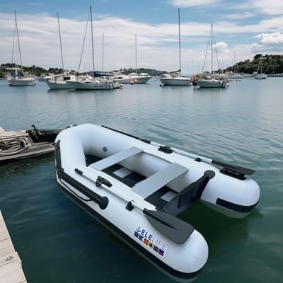 7.5FT Inflatable Boat,2-3Person Portable raft,2 Aluminum seat Board and 4 Aluminum Floor,3 Independent air Tubes,14 inch Large