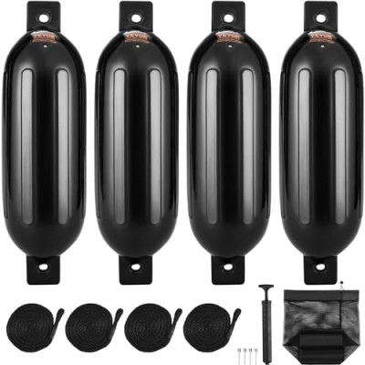 K-Musuclo Boat Bumpers 4 Pack, Boat Bumpers for Docking, Inflatable Cylindrical Twin Eye Ribbed Comes with Ropes Boat fenders
